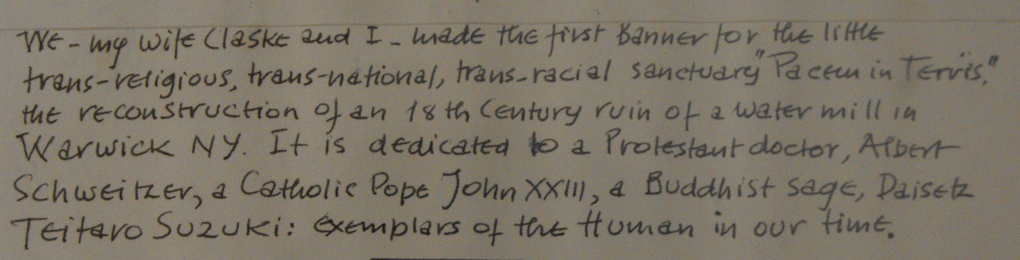 I get ready to depart but I know the journey is not over. I anticipate receiving my next issue of the Shoestring, reading and re-reading any one of Frederick's 35 books, and of course revisiting Pacem at any point in the year, knowing that it is there for the seeker to enlighten and to reflect on, to transform oneself towards that higher realm called the “religious.”