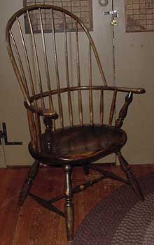 “The chairs were scaled to the person who had them made. This was General Hathorn’s chair – feel how lovely this feels,” as he took my hand and guided it over the contours. “You were measured from the knee to the floor to see what depth you needed. These chairs were custom made.” Then pointing out a Windsor Chair, he explained its practical utility: “it was an all purpose chair; it could be used indoors and outdoors, either in a formal room or bedroom; it’s light and comfortable and could be easily moved. You could add a cape or blanket on the back of the chair to block the draft.”