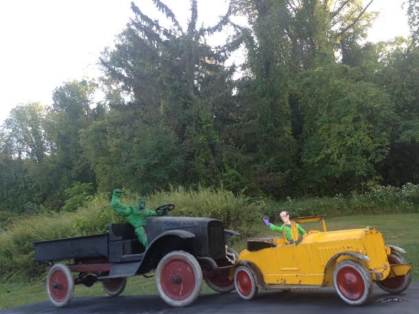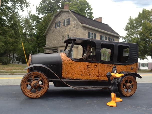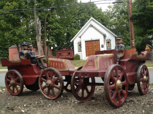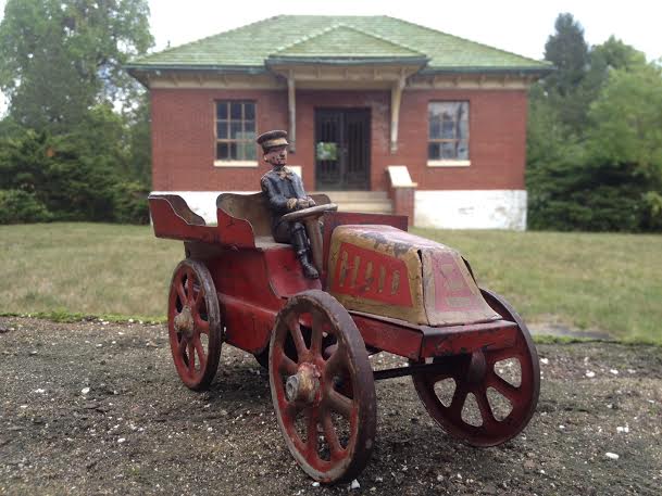 Over the years, I have found these toys at yard sales, antique stores, toy shows and expos and on eBay. I have learned that before anyone seriously endeavors to start a collection of any kind, it is of primary importance to research, research, and research. There are any number of books and sources of information. My primary intent was to catalog my collection for insurance purposes. Short of photographing them in a sterile setting, I sought out interesting backdrops and through the use of forced perspective and my IPhone 4s I got these tableaus, none of which took more than ten minutes at most.