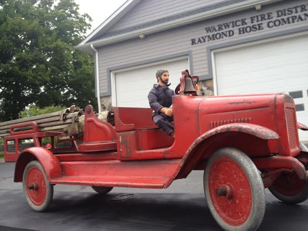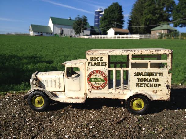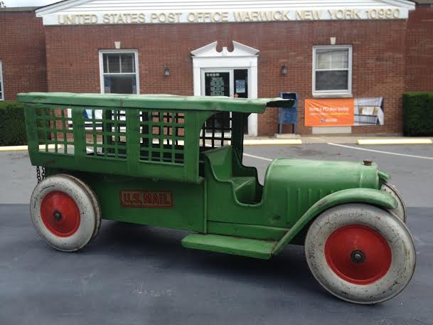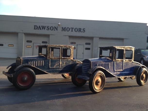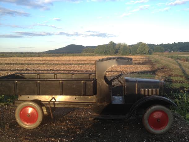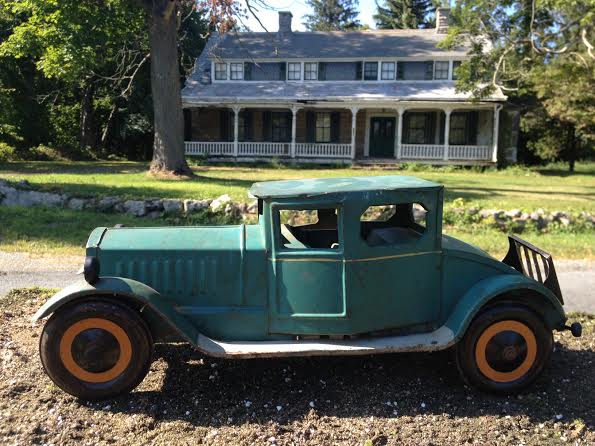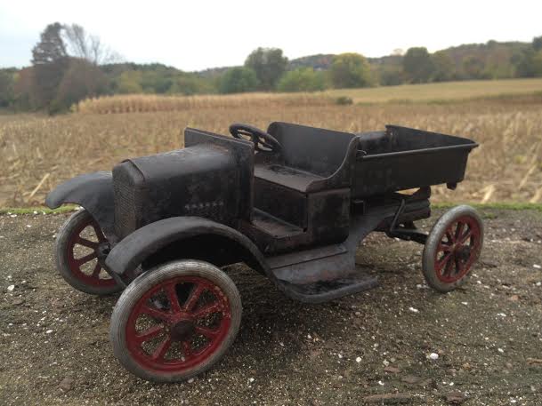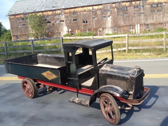 About 15 years ago, I went to a yard sale in a field up on Moe Mountain, where I found an old Buddy L dump truck from about 1923. I actually beat out a guy who spied me looking at it. It was in rough shape so I bead blasted it, re-painted it and did some research and discovered a new passion for pressed steel automotive toys. They represent an era when toys were made to last and could be played with hard without the thought of legal intervention. Today there are no metal toys - only plastic - and kids don't push toys along the floor. The only thing they push is their thumbs!
